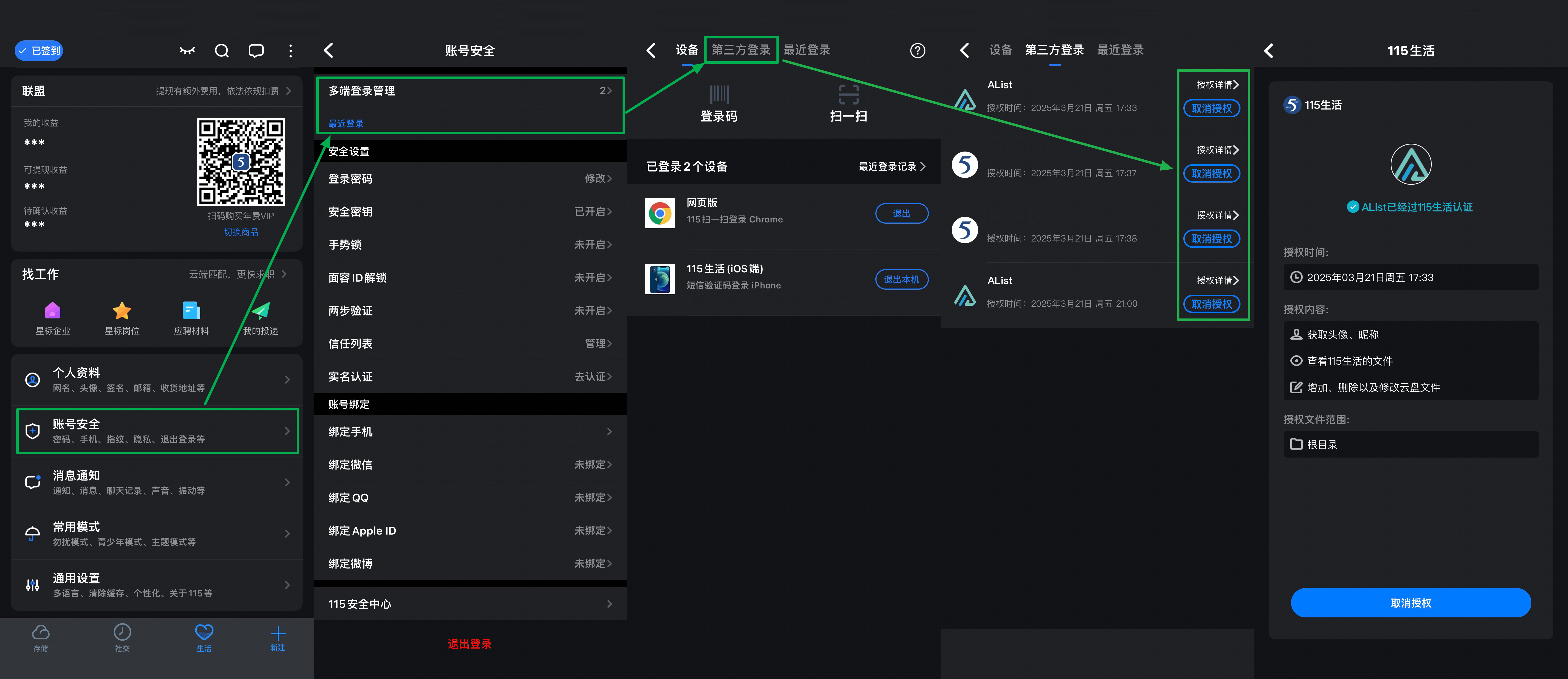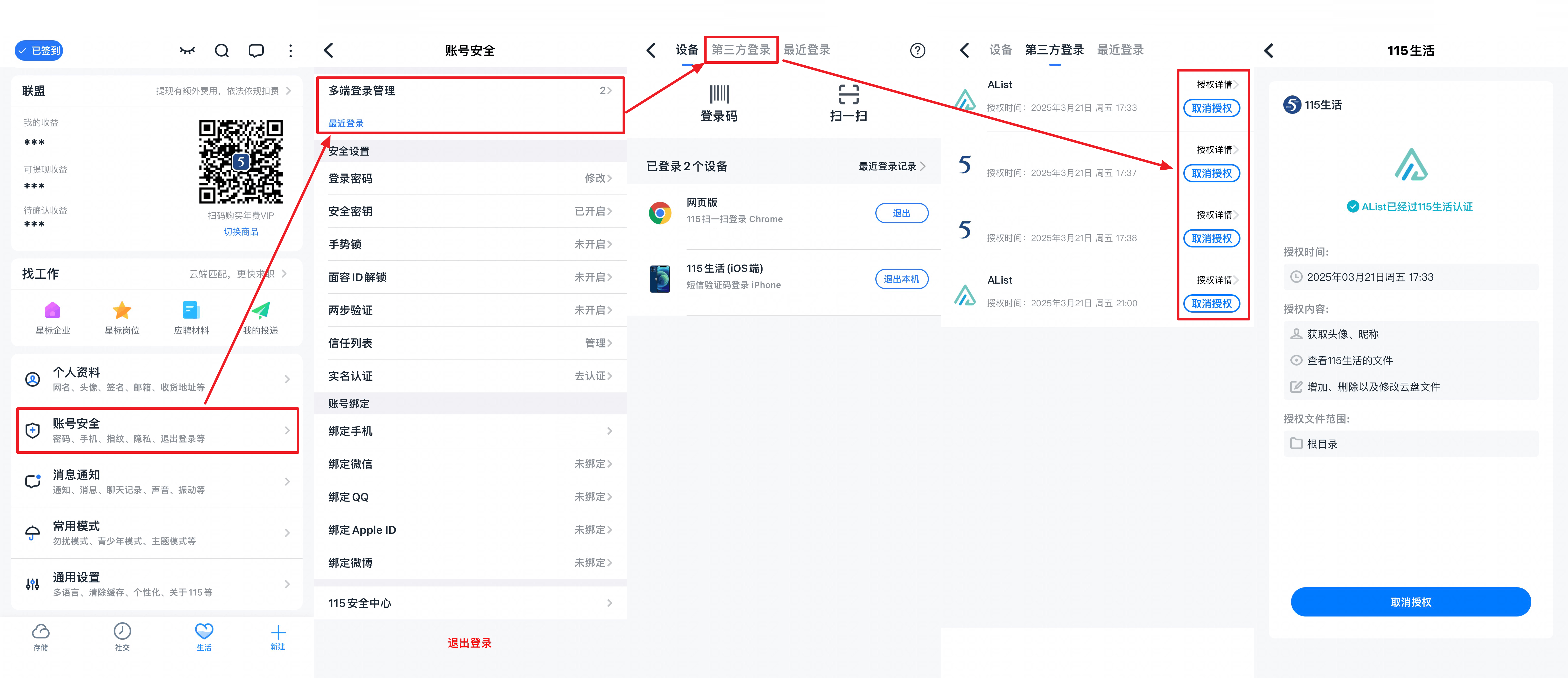 如果不小心泄漏了 Token,可以前往115设备登录管理解除应用授权