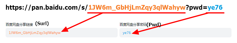 pan.baidu.com/s/后?前部分,百度网盘分享密码填4位提取码,无提取码留空。百度网盘分享链接和百度网盘分享密码可以随意账号填写,但是