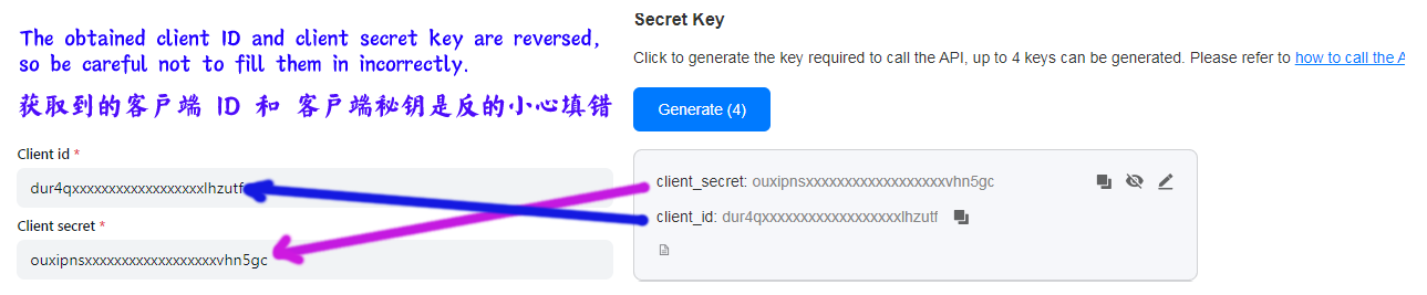 - 生成的客户端ID和秘钥和AList填写的顺序是相反的,注意别填错